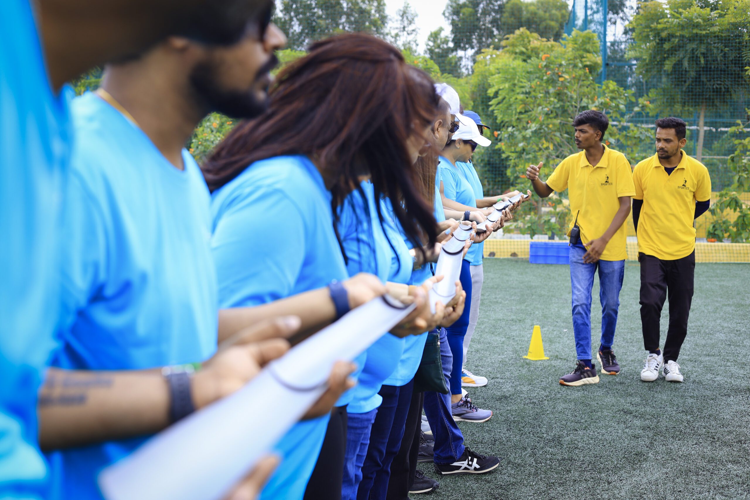 team playing human foosball edFore
